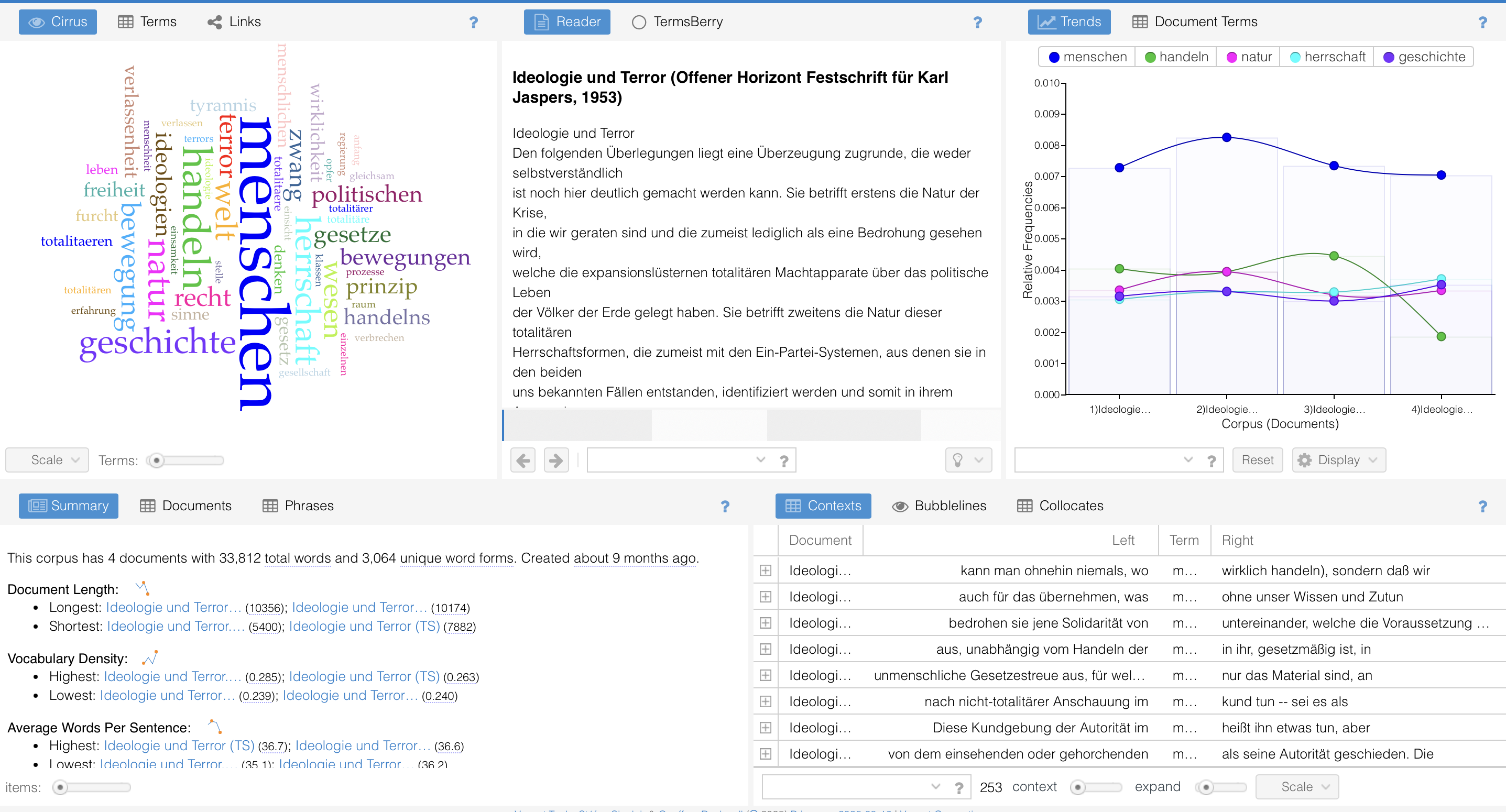 Fig. 6: Screenshot of the Voyant Tools applied to Ideologie und Terror